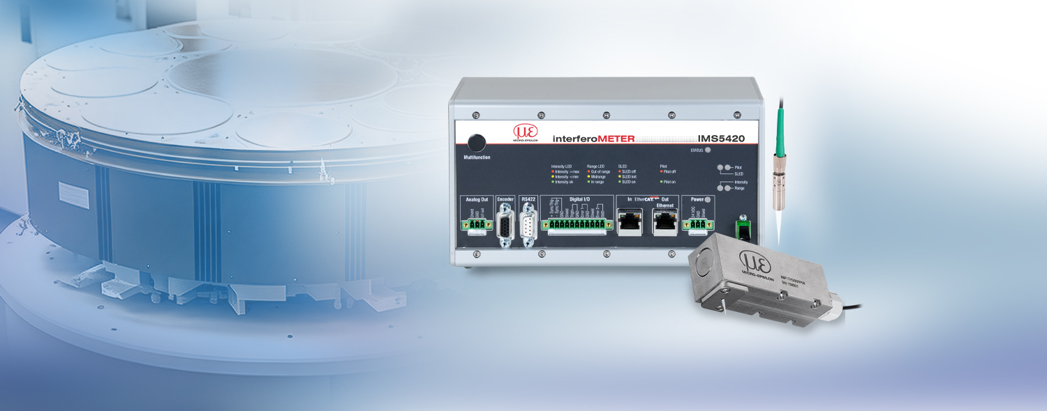 In wafer fabrication, a crystalline silicon ingot is sawn into thin slices of about 1 mm. The wafers are then ground and lapped to obtain the desired thickness and surface finish. For stable, reproducible process control, interferoMETER systems for inline thickness measurement are integrated directly into lapping and grinding machines. The detected thickness values are used for machine control as well as for quality control of each single wafer.