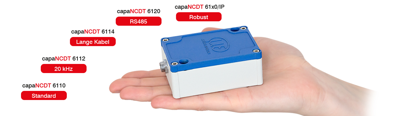 Gracias a su construcción robusta con carcasa de aluminio fundido a presión, el capaNCDT 6100 también es adecuado para entornos industriales. Variantes de modelo especiales ofrecen el máximo nivel de flexibilidad para numerosas aplicaciones: desde altos grados de protección hasta IP68, pasando por largas longitudes de cable y hasta aplicaciones en cadenas portacables o en la automatización robótica.