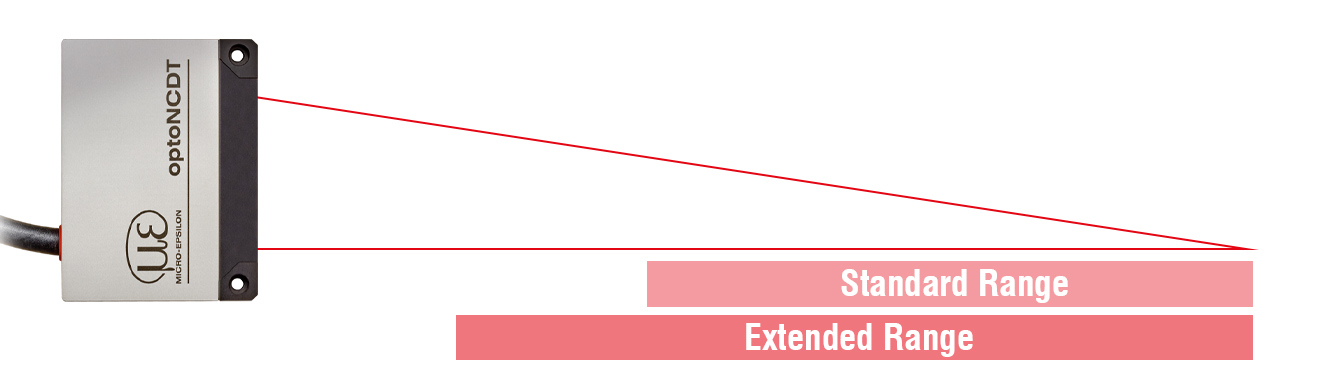 Los sensores optoNCDT 5500 se ofrecen en diferentes rangos de medición. Además del rango de medición estándar, puede utilizarse un rango de medición ampliado, lo que incrementa significativamente la gama de aplicaciones. Gracias al grado de protección IP67 y a su alta resistencia a la luz ambiental, este sensor láser también se puede utilizar en condiciones ambientales adversas.